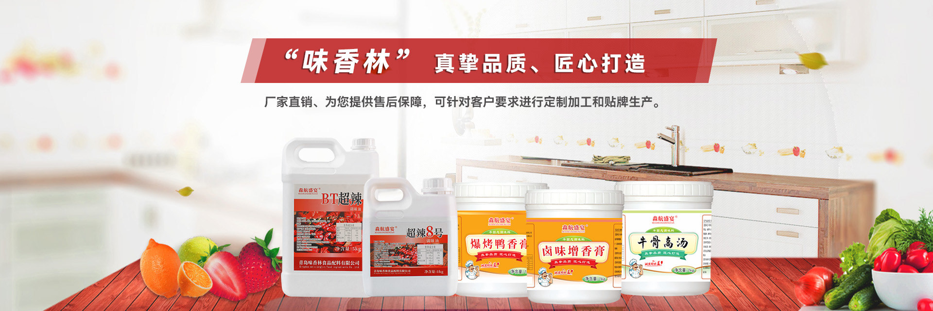 青島味香林復合調味料分為膏狀系列、粉狀系列、油狀系列三大分類,總共一百多種產品,可以根據客戶需求進行定制口味;